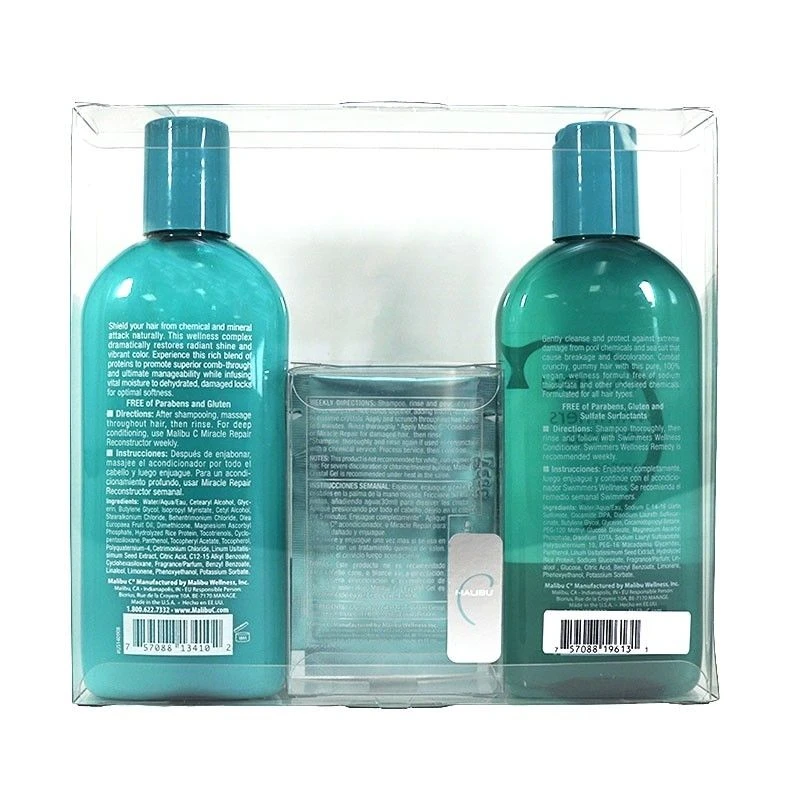 Care for your hair after each swim with the Malibu C Superior Swimmers Kit from All American Swim Supply! The Malibu C Superior Swimmers Kit includes the Swimmers Wellness Shampoo, Conditioner, and four packs of the Swimmers Natural Wellness Treatment that will nourish both your hair and scalp. By naturally removing harmful chemicals and minerals from the hair that cause discoloration, dryness, and dullness, the Malibu C Superior Swimmer’s Kit ensures that your hair stays manageable, shiny, and vibrant all season long. Give your swimmer the gift of manageable hair when you purchase the Malibu C Superior Swimmers Kit from All American Swim Supply! Save even more on your order with our FREE shipping offer and competitive prices!Â